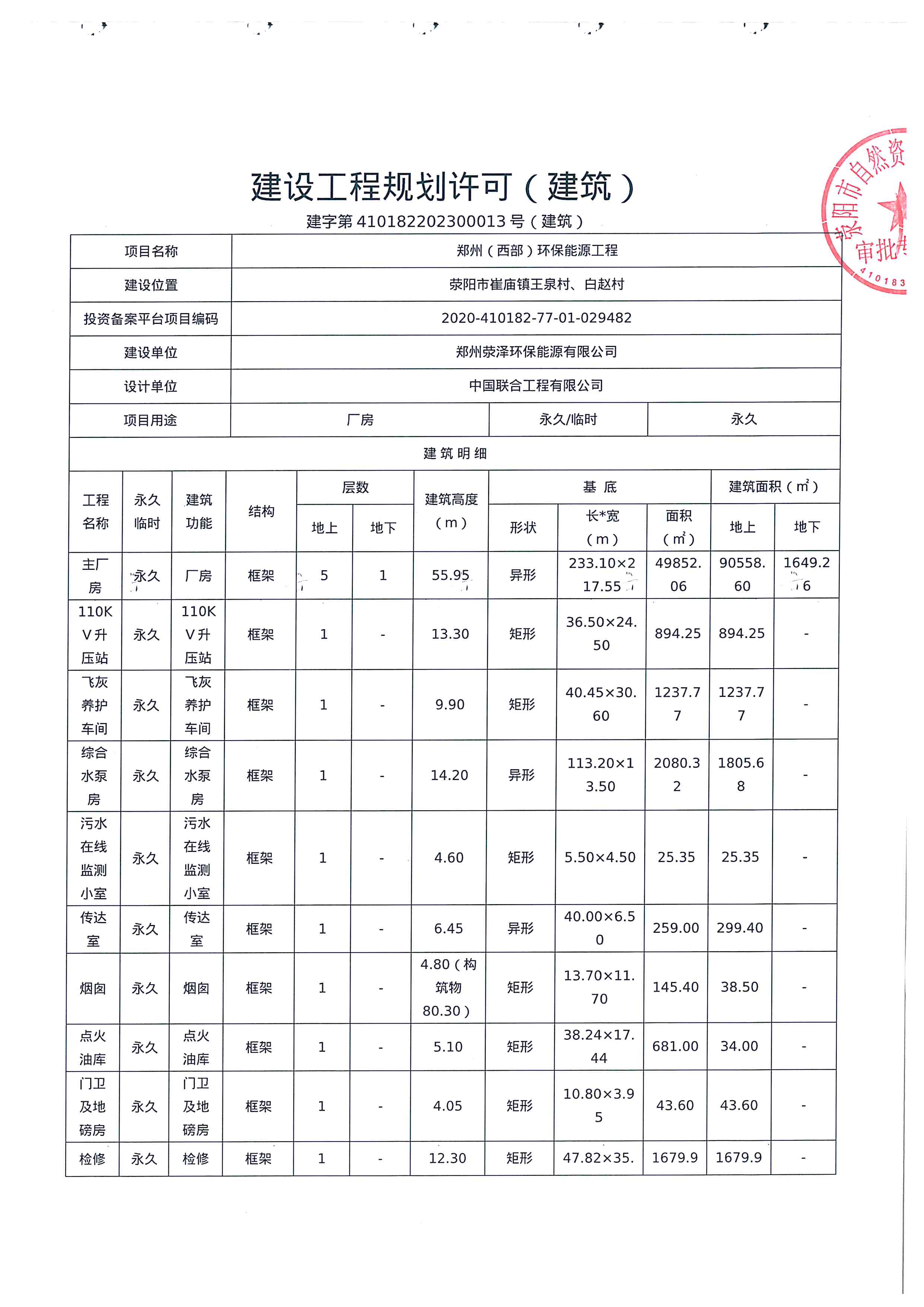 郑州荥泽环保能源有限公司郑州(西部)环保能源工程《建设工程规划许可证》已经我局荥规建字第410182202300013(建筑)号批准,根据有关法律、法规和《河南省城市规划公示制度》的要求,现予以公告。